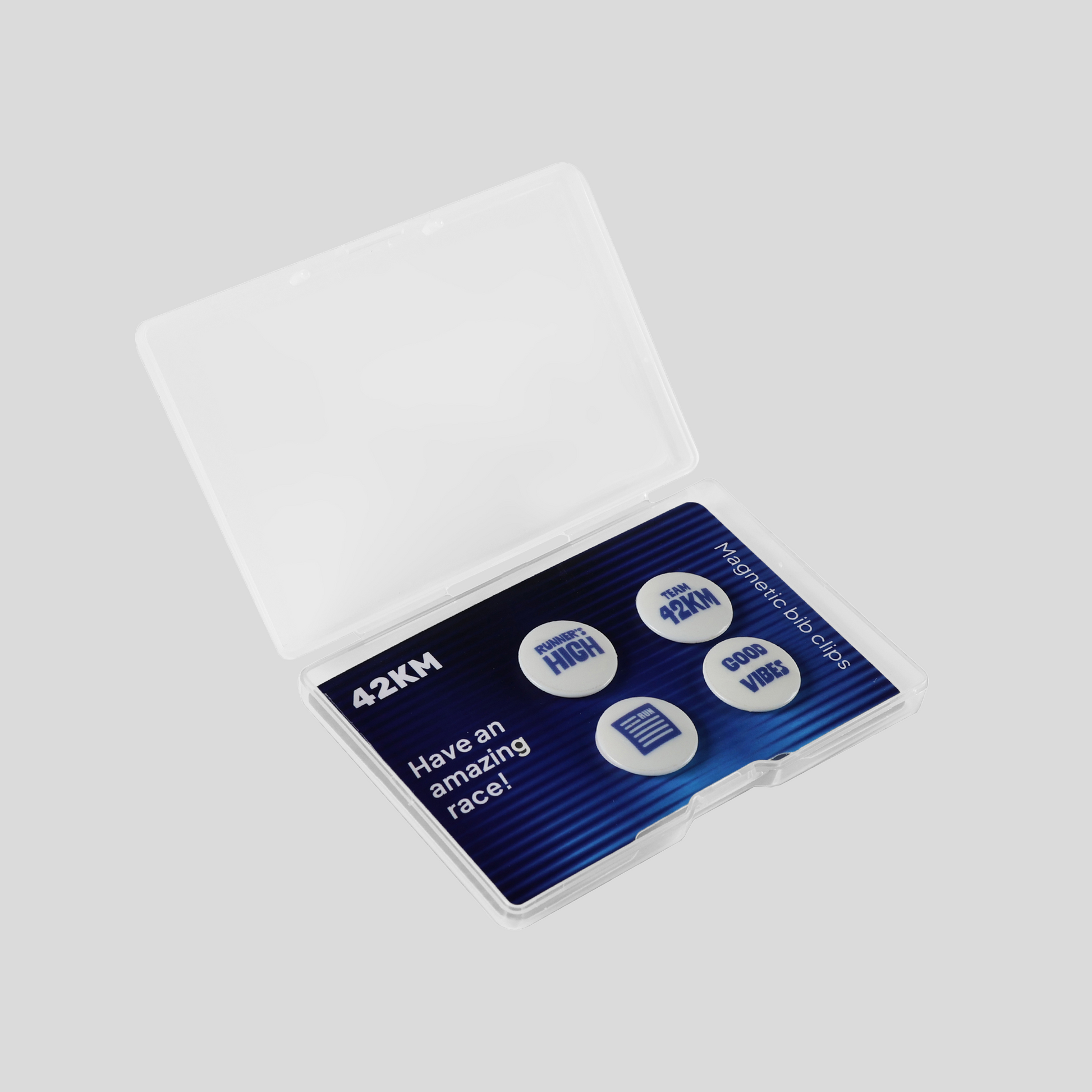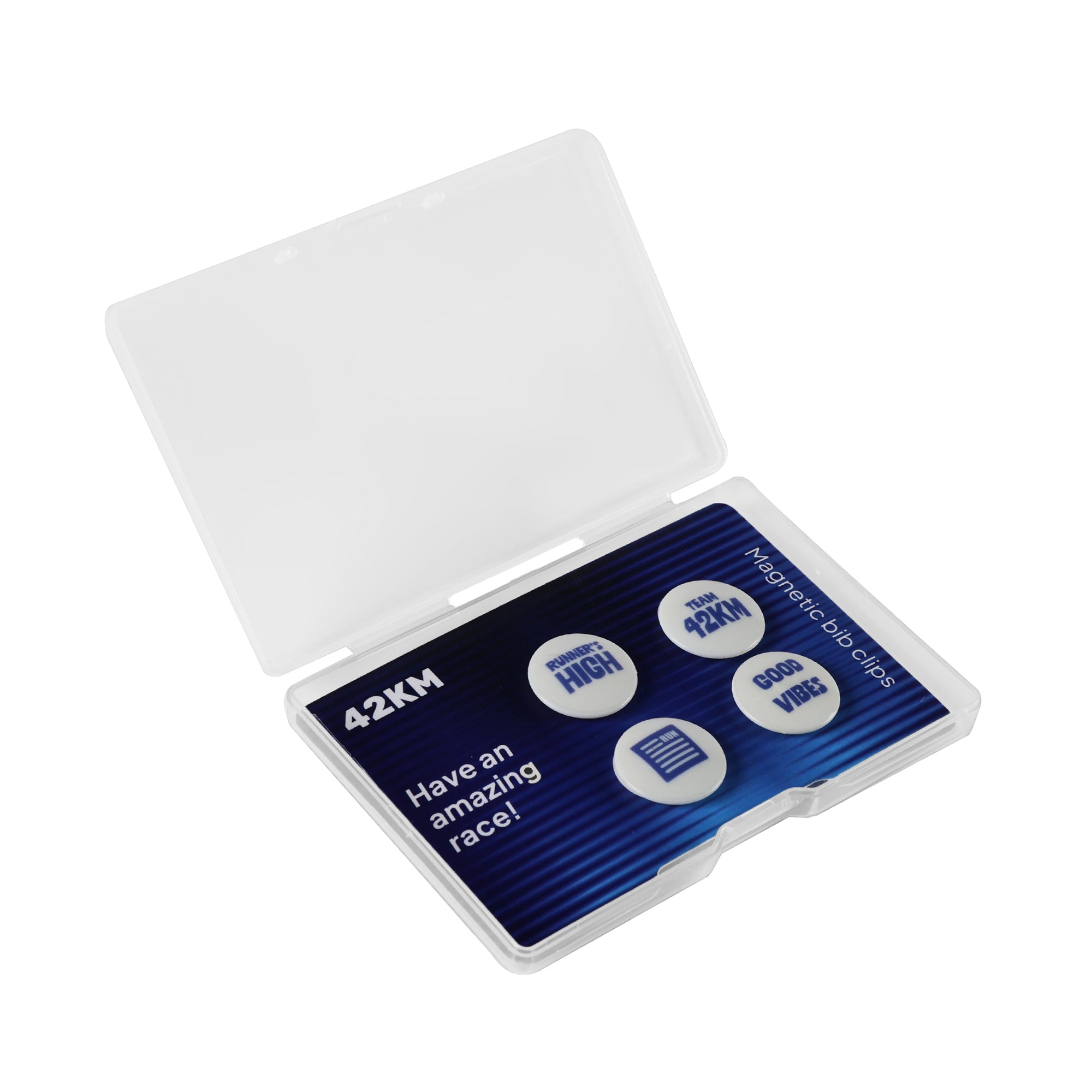 4 magnetic pins holds your bib without puncturing your race tee, singlet, or jacket.